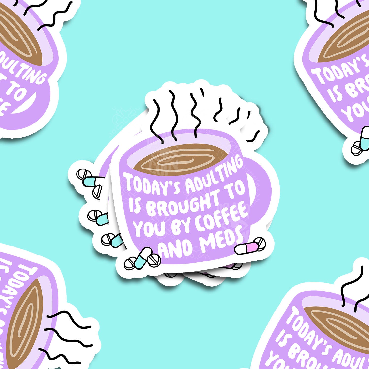 Adulting Brought to You by Coffee and Meds Vinyl Sticker