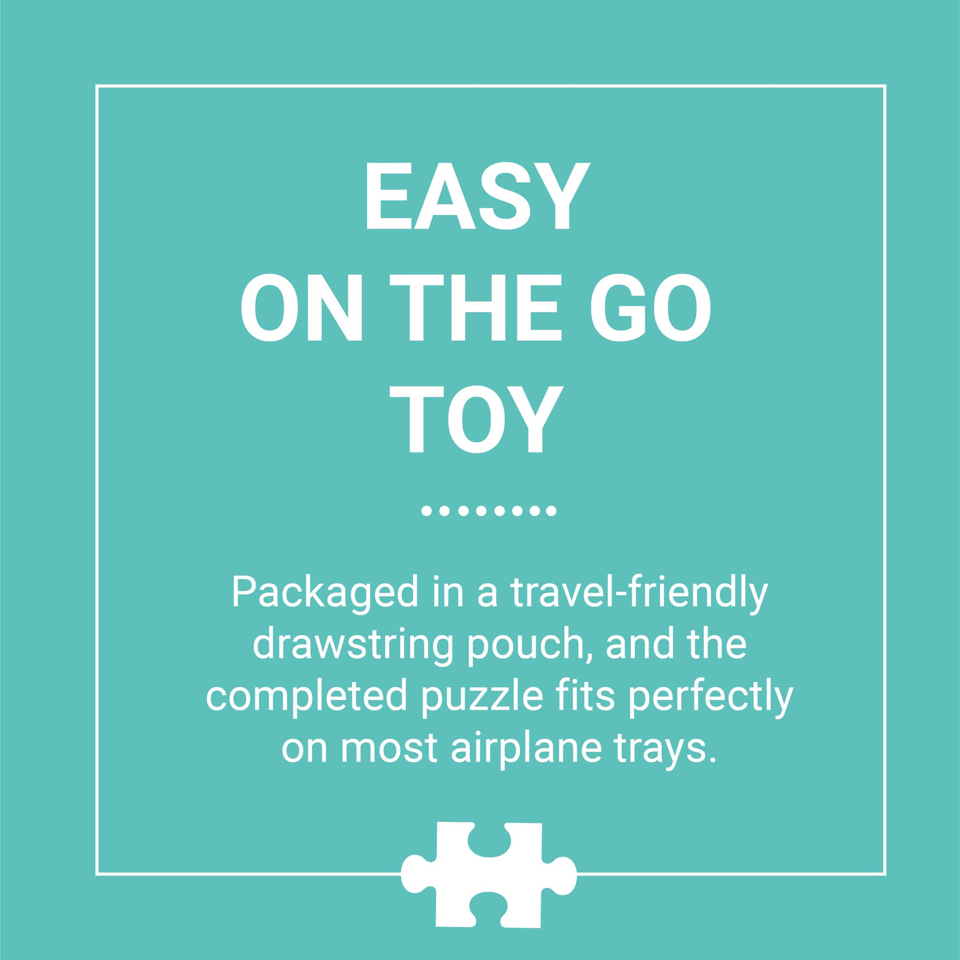 - TAKE IT WITH YOU: Packaged in a travel-friendly drawstring pouch, this puzzle fits perfectly on an airplane tray! Bring it on family vacations for an alternative entertainment option for little ones.